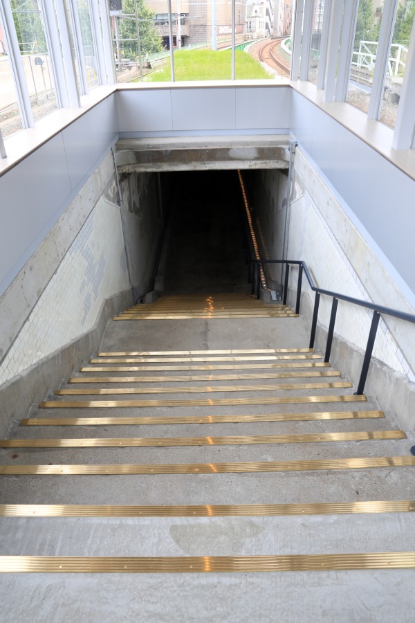 101年前の1912年の開業時に作られた階段がそのままです。
