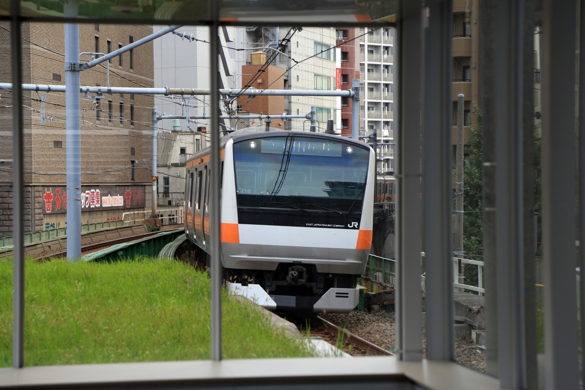 そのため真横をこのように中央線の電車が走り抜けて行きます。